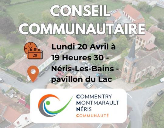 Read moreLe Conseil communautaire se réunira le lundi 20 avril 2026 à 19h30, au Pavillon du Lac, situé 24, avenue Marx Dormoy – 03310 Néris-les-Bains.