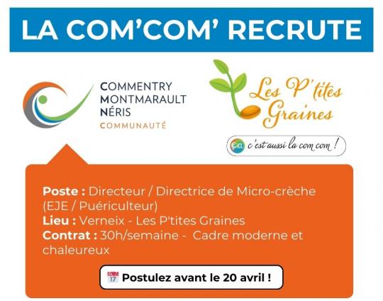 [RECRUTEMENT] La ComCom recherche son futur Directeur / sa future Directrice de micro-crèche à Verneix